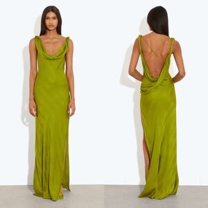 TAG: RAT & BOA cowl neck silk satin green chartreuse snake print slip sultry sexy maxi dress wedding guest anthropologie Tuckernuck mac duggal ieena BHLDN bridesmaid party evening gown black tie date night anniversary holiday prom gala military ball