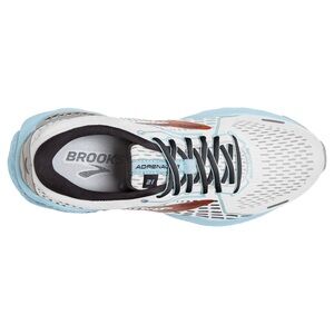 Brooks women's sneakers with a cream base. Black accents and orange highlights. Designed for comfort and durability.