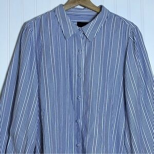 Alex Marie Navy and White Striped Button-Down Shirt Casual Business