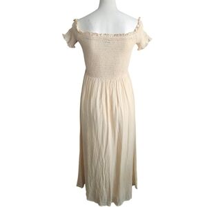 Urban Outfitters Amelia Beige Cream Off Shoulder Smock Midi Dress Sz Small NWT