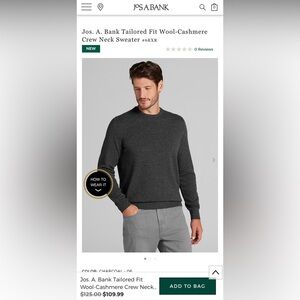 Jos. A. Bank Wool-Cashmere Crew Neck Sweater charcoal