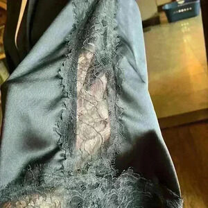 Victoria’s Secret Med Lg Satin/Lace Short Robe Tie Front Kimono Black Sexy