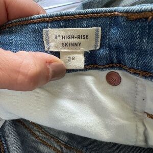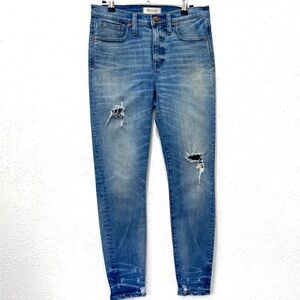 Trendy Madewell blue distressed 9” high-rise skinny jeans, size 28. Comfortable and stylish for everyday wear.