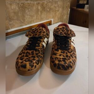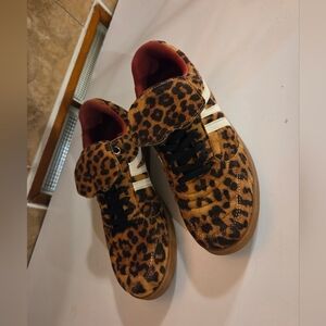 Featuring a bold leopard print and black laces, these sneakers are sure to make a statement. The microsuede cream accent and burgundy interior add a touch of luxury to these playful kicks. Perfect for adding a bold touch to any outfit.