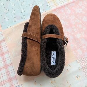 Alaia Biker Suede Mary Jane Flats In Brown