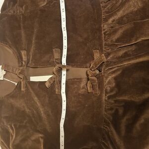 Charming brown velvet dress for woman, perfect for special occasions. Features elegant bow details for a stylish look.