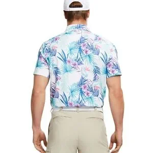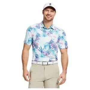 Elevate your casual style with this vibrant tropical print polo. Perfect for any relaxed occasion.