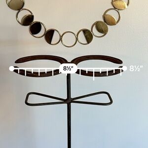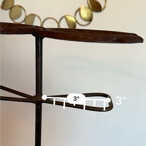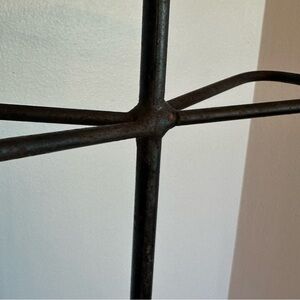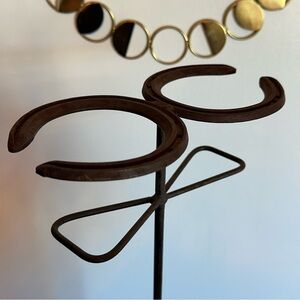 Unique rustic horse shoe stand. Made from metal (maybe steel?) Can be used to hold fireplace tools, umbrella’s, farm tools, etc. Approximate measurements are shown in the attached listing photos.