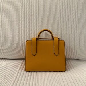 Strathberry Nano Tote in the most perfect shade of yellow - Blossom Yellow. Comes with original strap, dust bag, and box. In excellent condition: like new on the inside and only minor marks (see photo 3, then circled in photo 4) on the exterior back side.