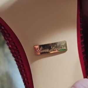 Dazzling red heels with sequin detail. Perfect for adding sparkle to any outfit.