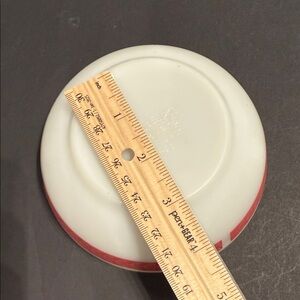 Elegant white bowl featuring a striking red leaf pattern around the rim. Perfect for serving or display. Good vintage condition- see all pics for size/condition. No chips or cracks. There is a tiny scratch in the red pattern on one side only as shown in pics.