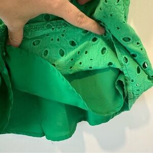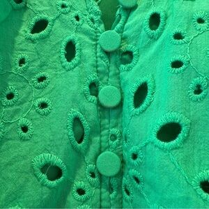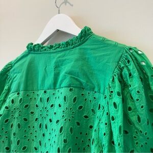Tags: Green eyelet blouse, puff sleeve top, boho chic top, scallop v-neck shirt, statement sleeve blouse, spring summer top, lightweight embroidered blouse, casual feminine top, festival style shirt, green boho blouse, eyelet embroidery top, lace look blouse, trendy boutique top, relaxed fit shirt, floral cutout top, amazon blouse top, j crew, preppy, madewell, Abercrombie, revolve