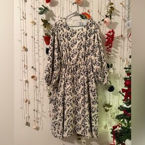 NWT Navy blue and white Dainty Jewells floral midi dress. Long sleeves. Tie waist. Zipper closure in the back. Corduroy material. Fully lined. Has pockets. Never worn.