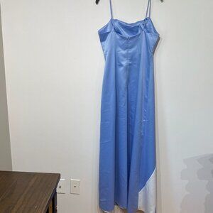 Blue White Satin Maxi Dress NWOT for Prom, Bridesmaid, Wedding