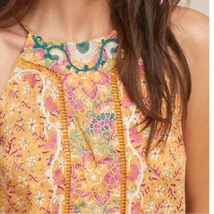 Brighten your wardrobe with this Anthropologie floral top. Features intricate embroidery and a halter neckline. Perfect for casual outings. Good Preloved Condition