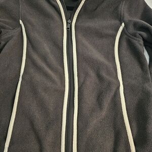 Columbia women's full zip fleece hoodie. Black with white trim. Pockets.