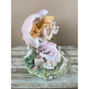 • Nature-themed sculpted base featuring greenery, flowers, rabbits, birds, and lambs