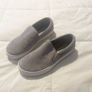 Sleek gray slip-on sneakers. Comfortable and stylish for everyday wear. **Condition- like new**