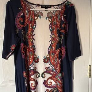 This vibrant dress features a stunning paisley print in rich colors. Perfect for any occasion, it combines style and comfort effortlessly. 95% polyester, 5% spandex.