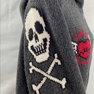 Torrid Grey Skull, Rose & Heart Embroidered Knit Full-Zip Sweater Hoodie 3X