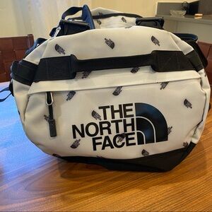 Chic travel bag by The North Face. Monochrome design with sturdy straps. Perfect for adventures.