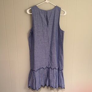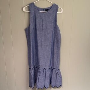 Ann Taylor Chambray Blue Midi Dress with Embroidered Scallop