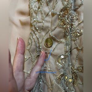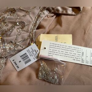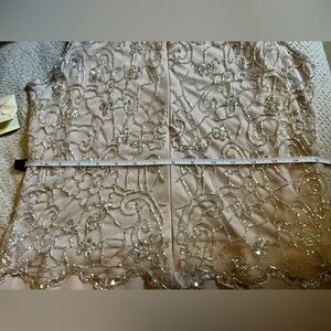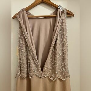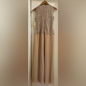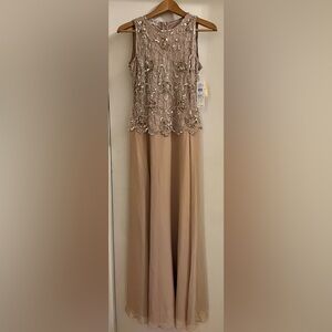 NWT J KARA Beaded Formal Sleeveless Blush Gown with Gold Sequins