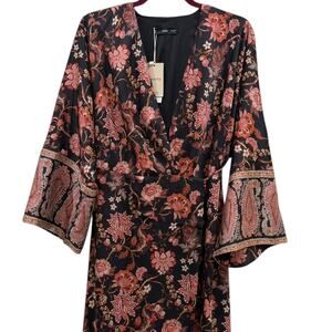 NWT Mango Paisley Print Fringed Hem Wrap Dress