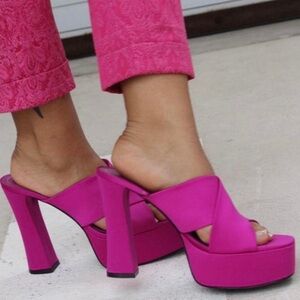 size 9 Zara women’s s chunky high heeled platform criss cross straps block heel sandals