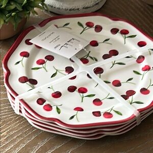 NEW! Set/4 Vintage Inspired Outdoor Melamine Red & White Cherry Scalloped Plates