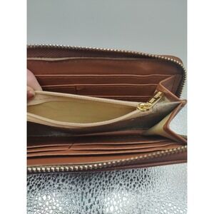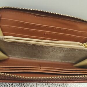Keywords: Michael Kors wallet, MK logo, saffiano leather, brown wallet, designer wallet, zip around, coin purse, card holder, luxury accessory, everyday carry, structured wallet, gold hardware, organized