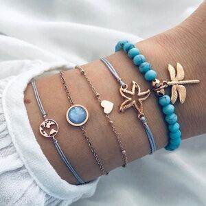 *DARCIE* 5-Pc Blue Dragonfly Fashion Bracelet Set