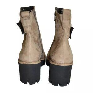 Stylish combat boots by Paul Green. Features a tan leather upper with a black chunky sole. Buckle detail adds a chic touch.