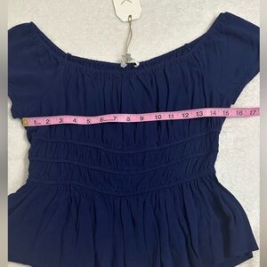 Free the Roses Blue Pleated Flutter Sleeve Tank Top Size L