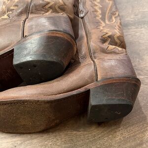 Step into style with these classic brown leather cowboy boots. Perfect for any occasion, these boots offer both comfort and durability. A must-have for any wardrobe.