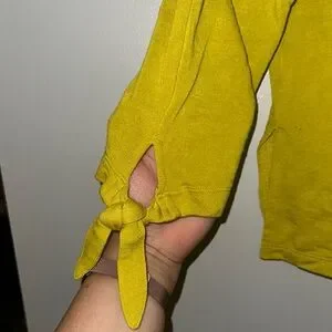 This vibrant yellow blouse from LOFT features a relaxed fit and stylish tie front, perfect for a cheerful spring or summer look. The 3/4 sleeves add a touch of elegance while maintaining a casual vibe.