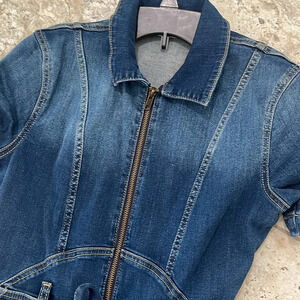 SUKISO WOMEN'S NAVY KIRA SHORT SLEEVED DENIM JUMPSUIT OVERALL SIZE SMALL