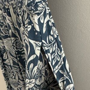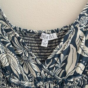 Patrons of peace women’s blue and white floral jumpsuit in size small. Jumpsuit is smocked and wide-leg. Includes adjustable tie straps and pockets. In great condition from a smoke-free home. Open to offers and bundles. Fast shipping!
