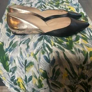 Elegant flats with a pointed toe. Black front with cream back. Perfect for versatile styling.