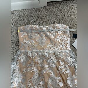 New with tag Stunning maxi tube dress with intricate floral design. Cream base with shimmering silver details. Ideal for special events.