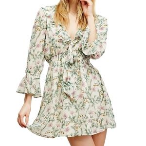 Free People - Ruffle Me Up 3/4 Sleeve Chiffon Floral Mini Dress Sz M