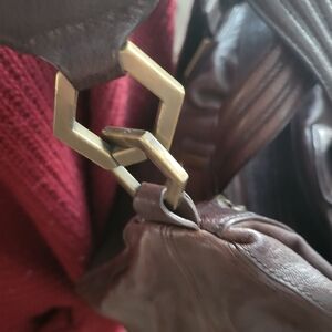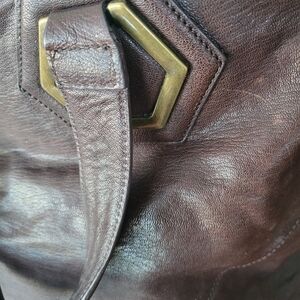 Discover the elegance of this lovely chocolate colored leather carry all bag by Kenneth Cole