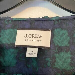 J. Crew Collection Sueded Silk Plaid Ruffle Collar Green Blue Plaid Blouse Large in excellent condition. Supposed to have a faded look (sueded silk) . Measurements laying flat chest 22 1/2 inches across and length 28 inches long