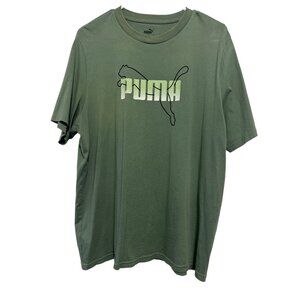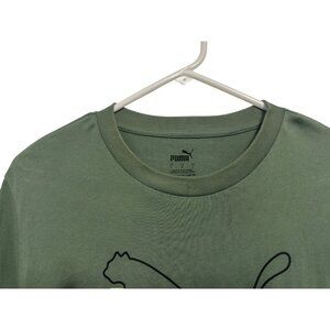 Puma Mens Olive Green Logo Graphic T-Shirt Size L Cotton Casual Wear Short Sleev