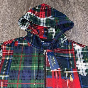 Polo Ralph Lauren Men's Patchwork Plaid Fleece Lined Full Zip Hoodie Size
