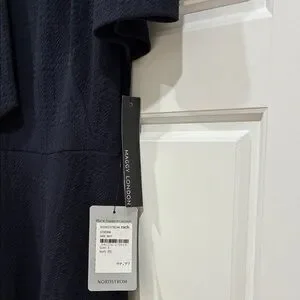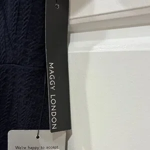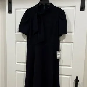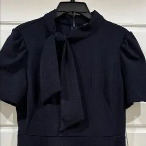 Maggy London Short Sleeve Necktie Navy Midi Dress