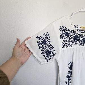 Roller Rabbit | Embroidered Cotton Dress White Blue, Womens Small
