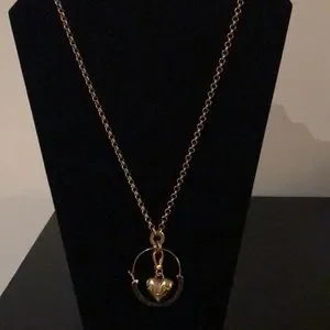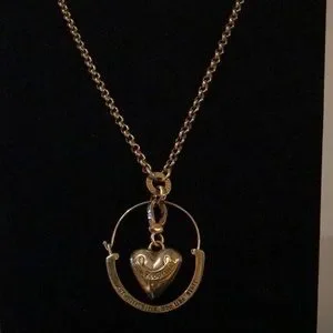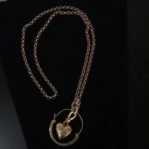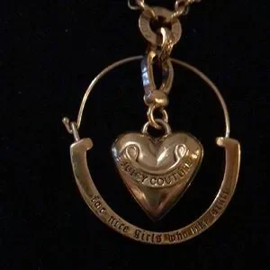 Juicy Couture vintage gold tone puffer heart and crown necklace. Juicy motto “For nice girls who like stuff”. Juicy logo on multiple pieces. Wearing option with and without the heart. Heart can also be worn on other chains for another look. 80’s or 90’s Excellent used condition with light wear scratches. Heart is puffed not flat. Quality piece.
