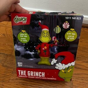 Brighten your holiday decor with this festive inflatable Grinch. Featuring a vibrant red and green design, this decoration adds a playful touch to your celebrations. Perfect for creating a whimsical holiday atmosphere.