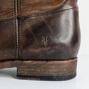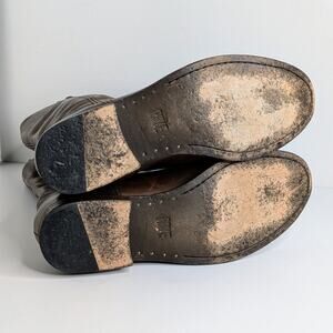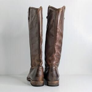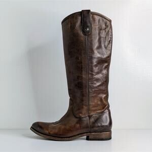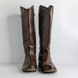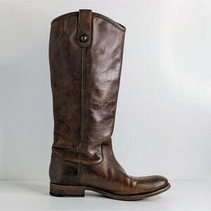 Here's your opportunity to score classic Frye Melissa Button boots in a size 7.5! Tall brown leather riding boots with signature button detail and pull-on styling – that timeless equestrian look folks love. These are in good condition with natural leather wear from use (check out the pics). Perfect for channeling Western boho, modern cowgirl, or quiet luxury style.